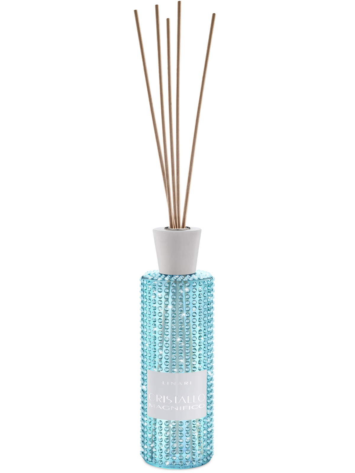 Aus der vollkommenen Symbiose zwischen LINARI und SWAROVSKI ELEMENTS resultiert das perfekte Design des limitierten Diffusors CRISTALLO-MAGNIFICO. Die anspruchsvolle Anmutung der zeitlos-schönen Formgebung von LINARI und der einzigartigen Schönheit der funkelnden aquamarin-farbenen Kristalle führt dieses kreative Design in die nächste Dimension.