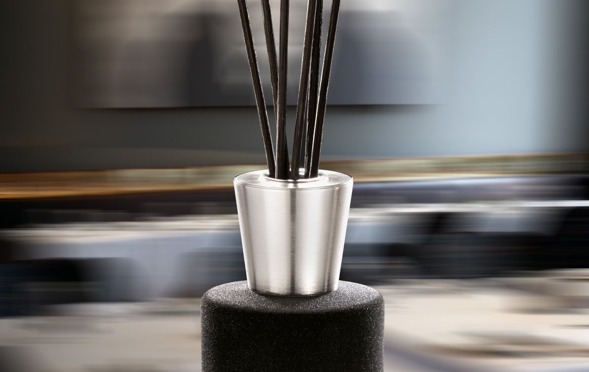 ONICE is characterised by its beauty, the tactile qualities of the velvet and its uniqueness in the home fragrance market with the finest black coloured velvet. Predominantly used as a home fabric, the velvet symbolises the marriage of home and fragrance in the most pure and sensuous way. The result is a perfectly designed object as well as an elite home fragrance.The exclusively brushed aluminium surface of the aluminium lid and luxurious label stands in contrast with the velvety surface of the Italian glass bottle. The exclusive black evaporating sticks emphasise the avant-garde look.